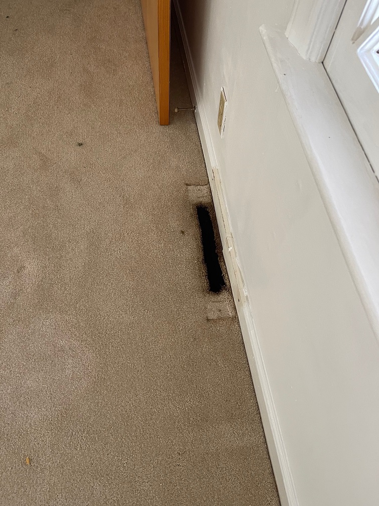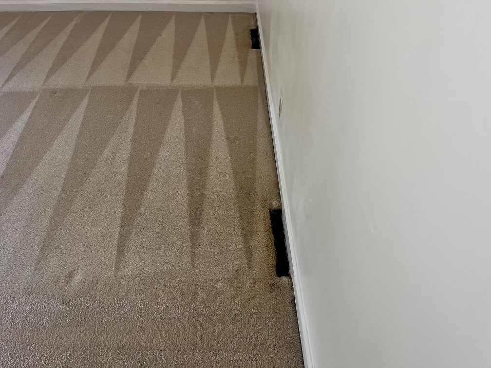 This customer contacted us because they were moving into their new home and wanted to see if we could removed these dark arounds around the vents while cleaning the carpet. These spots come from the dust settling in the carpet fibers and oil from the vent itself.