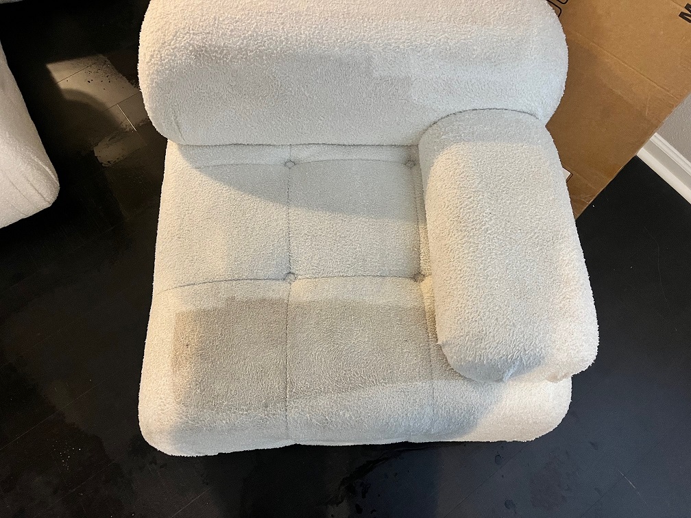 Before and after sectional cleaning. We used professional upholstery cleaning chemicals with steam water to deep clean, removing dirt; to restore the light fabric.