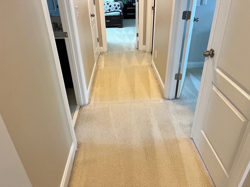 Normal cleaning using hot water extraction. This customer just wanted their once a year cleaning to keep their white carpets looking fresh.
